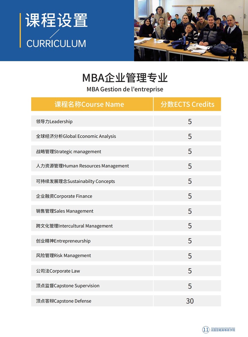 法国亚眠高等商学院 MBA企业管理 招生简章